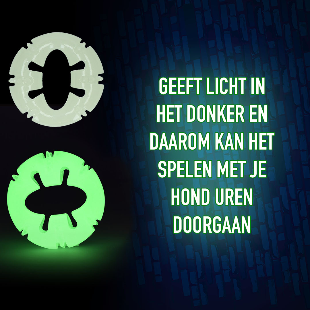 Dit speelgoed geeft licht in het donker en daarom kan het spelen met je hond uren doorgaan, zelfs in het donker!