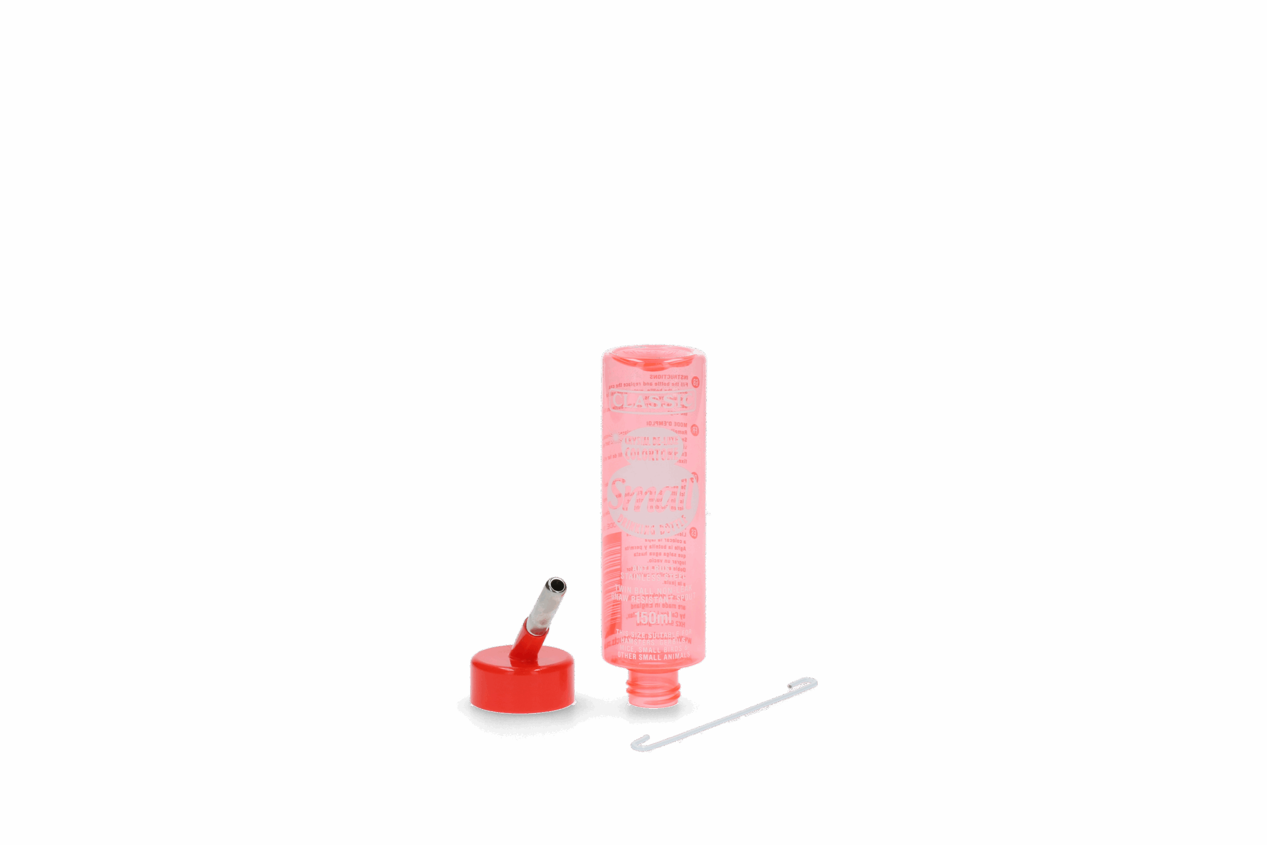 Knijp even in de fles, er kunnen een paar druppels vallen waarna er een vacuüm zal ontstaan.