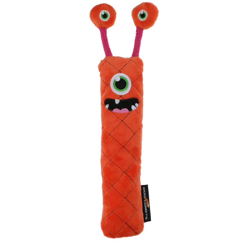 Deze buitenaardse wezens nemen samen met de trouwste viervoeters de wereld over! Deze knuffelige werpstokken zijn gevuld met een sponsvulling, wat ze zwaarder en dichter maakt dan standaard hondenspeeltjes. Het knisperende materiaal aan de binnenzijde en de pieper zorgen voor extra stimulans tijdens het spelen en moedigen de hond aan om zijn tanden in het speeltje te zetten. De Invaders zijn perfect om binnen mee te spelen, lekker mee te knuffelen en trek- en apporteerspelletjes te doen. Elke Invader heeft een unieke gezichtsuitdrukking en persoonlijkheid.