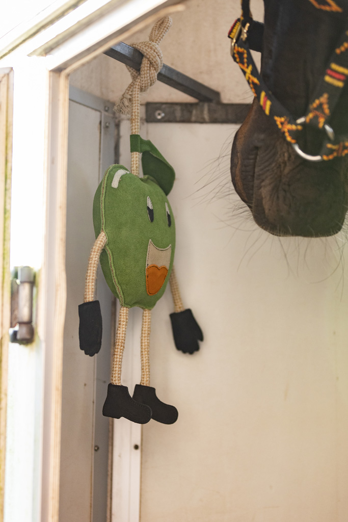 De appel, banaan, wortel, peer en framboos zijn gevuld met jute. Ideaal voor paarden die niet van krakende geluiden houden.