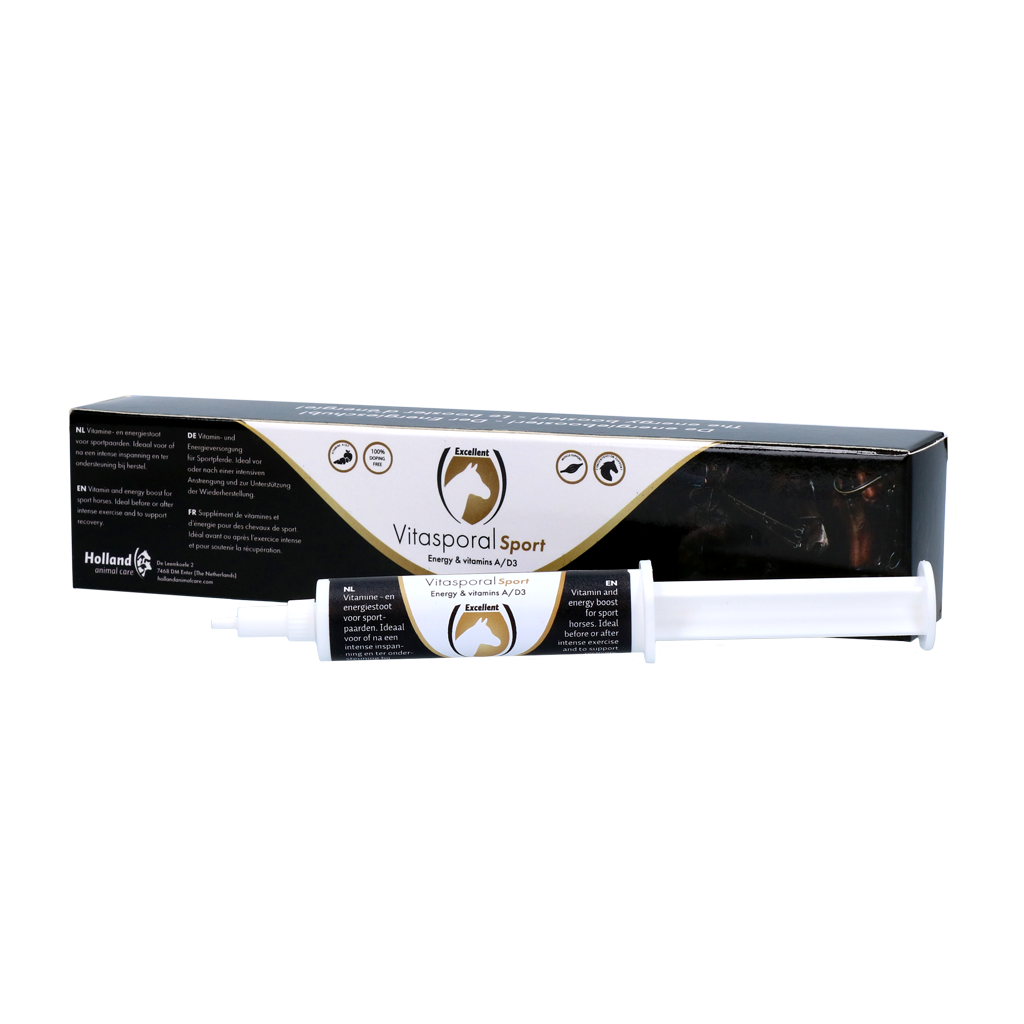 Vitasporal Sport is het geheime wapen voor topprestaties. Het zorgt ervoor dat je paard meer energie heeft tijdens wedstrijden en sneller herstelt na de tijd. Daarnaast werkt het als een opkikker voor paarden, doordat het vitamines en voeding bevat. Vitasporal Sport is aanvullend diervoeder voor paarden.