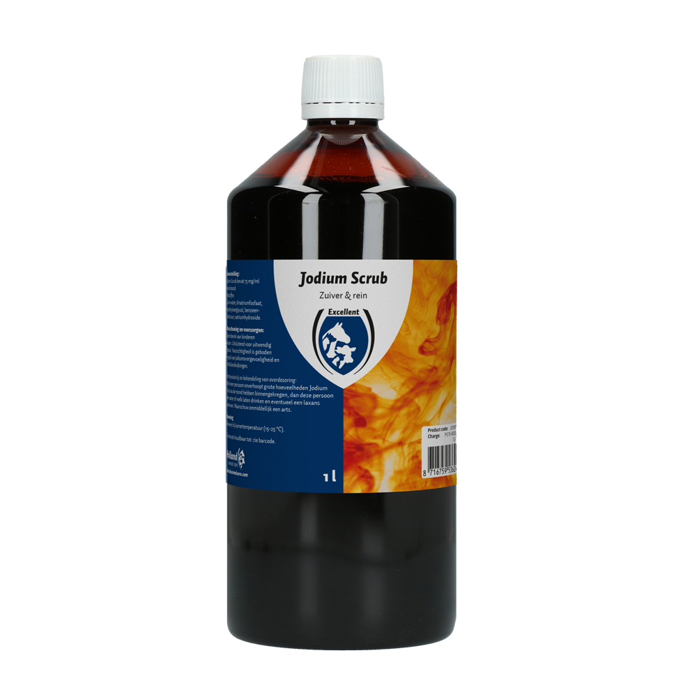 Jodium Scrub heeft als bestanddeel povidonjodium. Povidonjodium is makkelijk oplosbaar in water en is prettig in gebruik omdat het niet prikt.