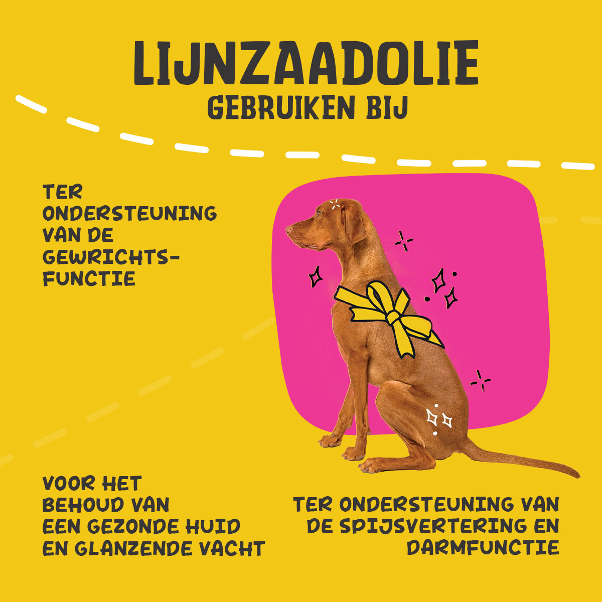 Linseed Oil is 100% pure lijnzaadolie die koudgeperst is, zodat alle essentiële voedingsstoffen behouden blijven. Lijnzaadolie is van nature een bron van omega 3-vetzuren. Omega 3-vetzuren ondersteunen de gewrichten, de darmwerking, de spijsvertering, de huid en de vacht.