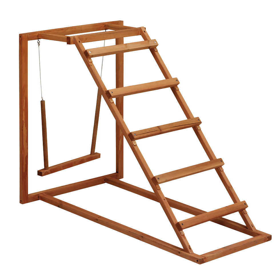 Speelgoed om kippen actief te houden. Ze kunnen erop klimmen, zitten, of schommelen.