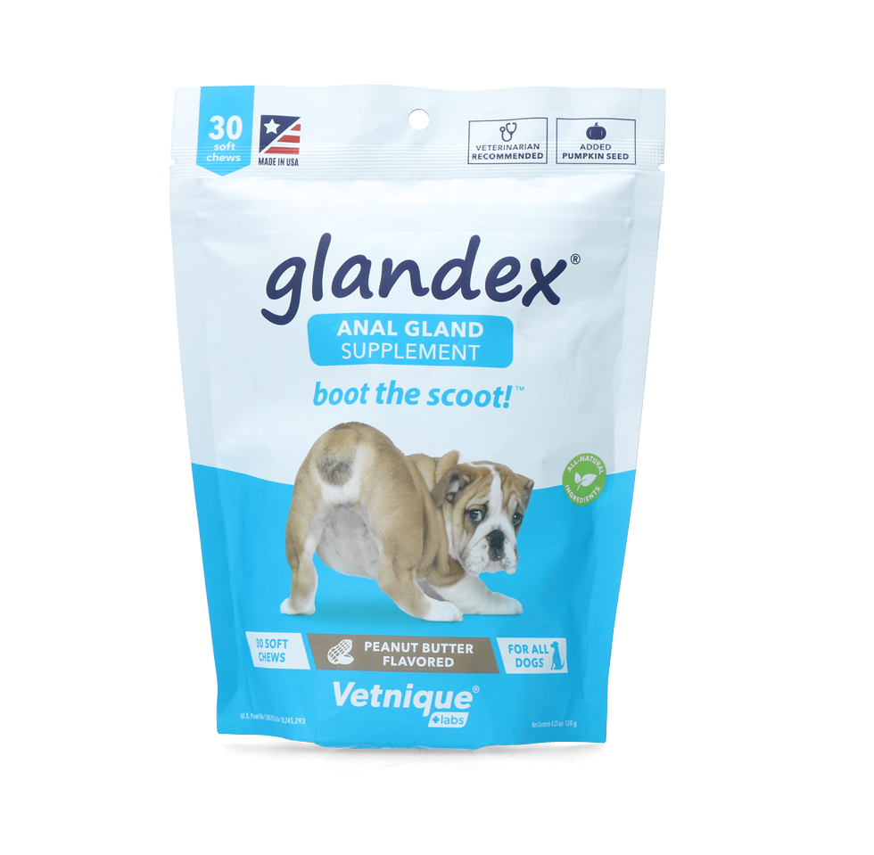 Glandex soft chews zijn speciaal ontwikkeld om anaalklierproblemen bij honden tegen te gaan. Bij iedere ontlasting komt er een beetje inhoud uit de anaalklieren mee naar buiten en op deze manier worden de problemen minder of verdwijnen helemaal.