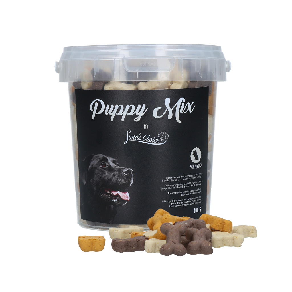 Deze trainer-snack is een semi-moist soft beloning. Dit houdt in dat deze snacks nog licht vochtig zijn en daardoor extreem krachtig zijn in smaak en geur. Ideaal dus om je pup of jonge hond op een positieve manier te belonen tijdens trainingen, cursussen of het aanleren van basiscommando’s. De Puppy Mix is speciaal afgestemd op de behoeften van jonge honden en zijn de perfecte beloning. Deze trainer-snack is gemaakt in Nederland.