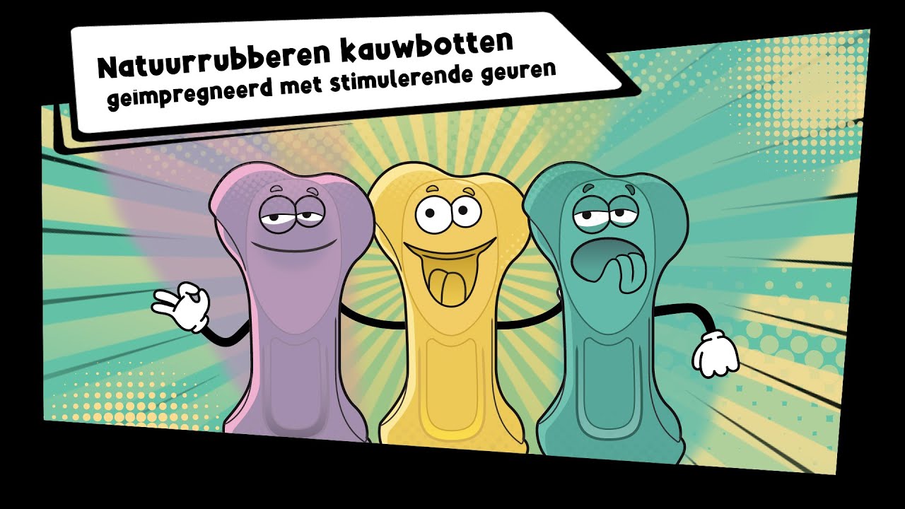 Natuurlijke, rubberen kauwbotten met stimulerende geuren!