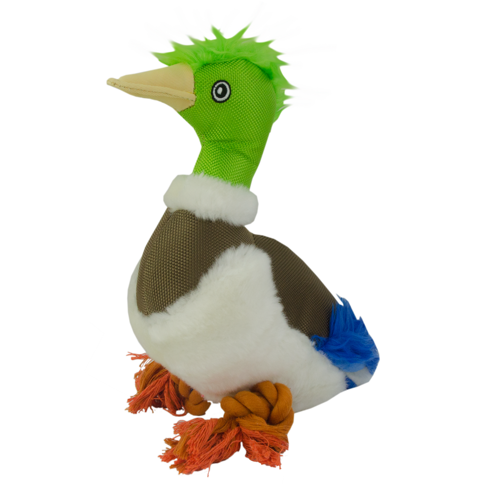 De Wild Life collection bestaat uit natuurgetrouwe pluche hondenspeeltjes. De vacht is gemaakt van zacht pluche en deze eend heeft een flostouw en een pieper.