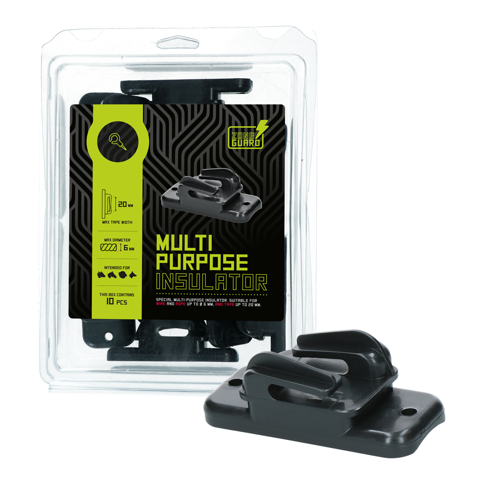 Isolator De simpele lintisolator die overal inzetbaar is. Geschikt voor koord en draad tot 6 mm, en lint tot 20 mm.
